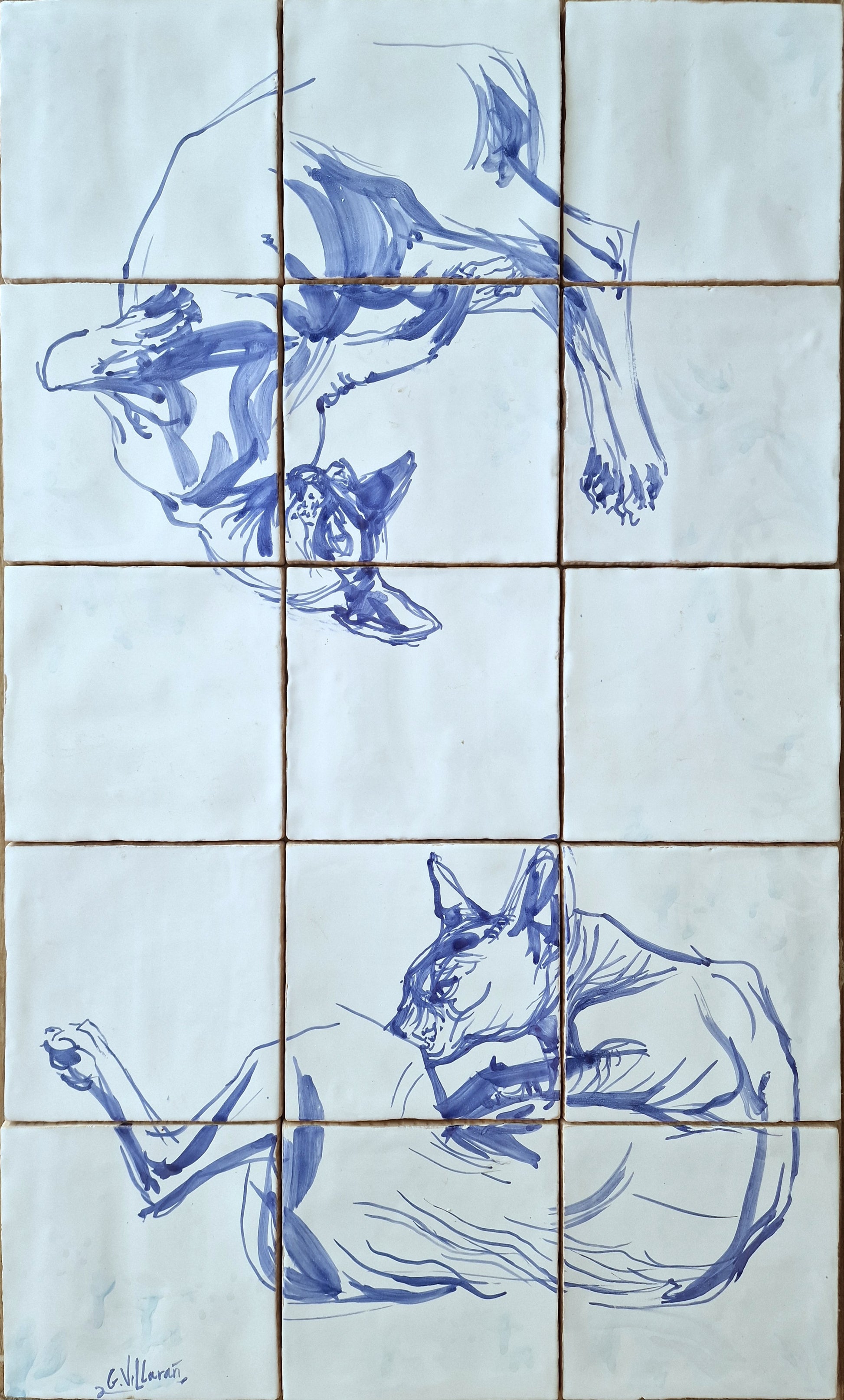 Technique: glaze on cover on 15 x 15 x 0.2 cm white clay biscuit.