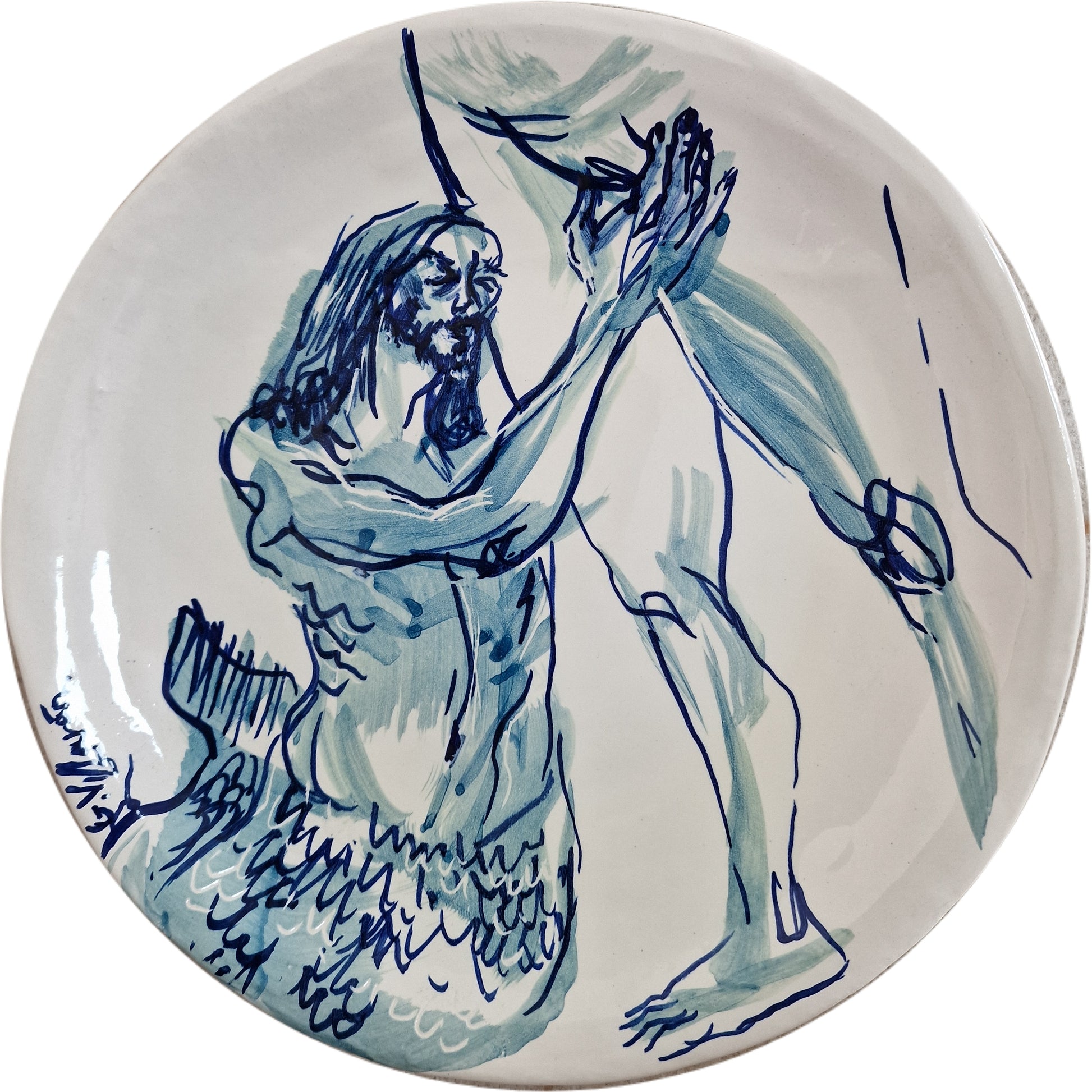Técnica: esmalte sobre cubierta sobre plato cerámico hondo de barro blanco.