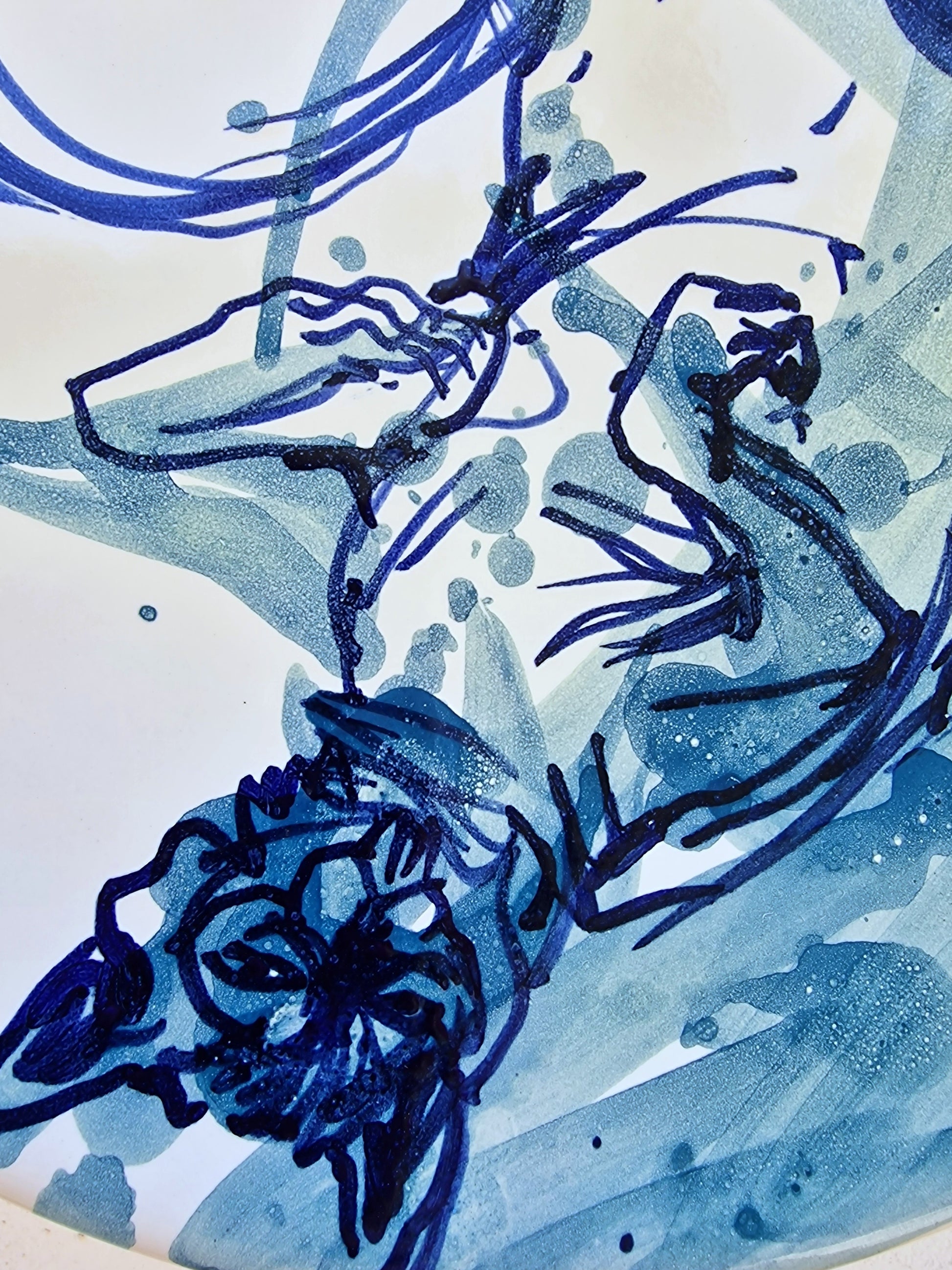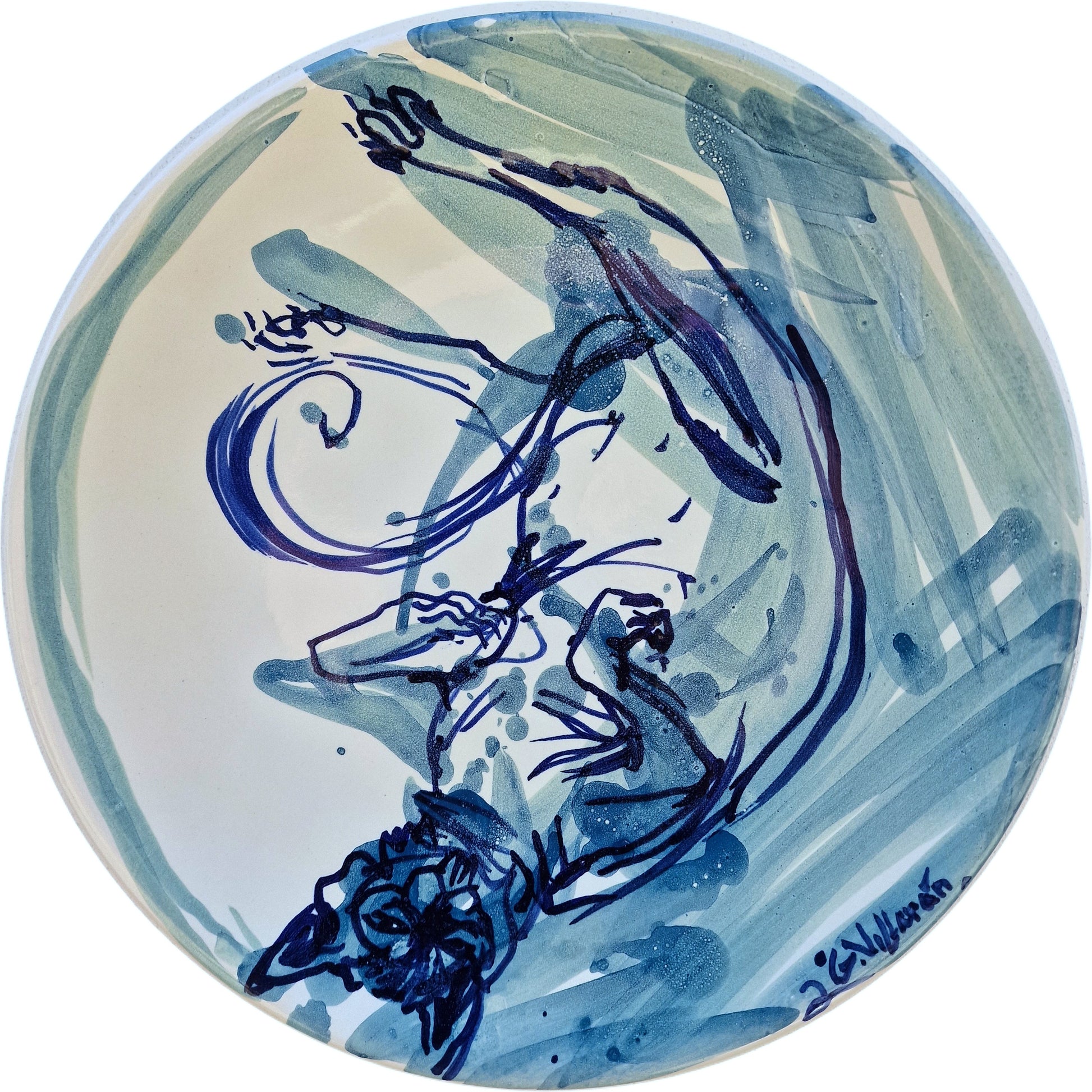 Técnica: esmalte sobre cubierta sobre plato cerámico hondo de barro blanco.